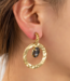 Deze fantastische oorbellen zijn lekker wat groter en anders. Ze zijn een must-have in elke sieradencollectie. de oorbellen zijn oorstekers dus lekker handig. Aan de steker een gedraaide hanger met hieronder een grote gehamerde ring met hierin een crystal ovaal steen in een mooie donkere tint.