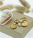Op de foto hebben we een prachtig paar goudkleurige oorbellen met een zeeschelp bedel.