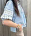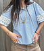 Een hele fijne blouse met een elegante en frisse uitstraling. Het model heeft een klassieke kraag, een knoopsluiting en halflange mouwen met subtiele broderie kant details, wat zorgt voor een vrouwelijke en stijlvolle touch. De lichte stof en rechte pasvorm maken de blouse comfortabel en luchtig om te dragen. Perfect te combineren met een pantalon of jeans voor een verzorgde, moeiteloos chique look.