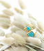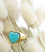 Sommige sieraden doen je hart sneller slaan – en deze ring is daar eentje van. Met zijn glanzende goudkleurige stainless steel band en fel turquoise hartvormige steen is het dé eyecatcher voor je hand. Of je nu een casual jeans draagt of een classy jurkje, deze ring zegt: “Kijk naar mij” (en geloof ons, mensen zullen dat doen).