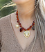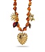 Soms wil je dat jouw ketting gewoon lekker opvalt! Deze ketting is daar het perfecte bewijs van. Grote bruine kralen die bijna lijken te gloeien in het zonlicht, vrolijke bedels die je nieuwsgierig maken en middenin: een goudkleurig hart dat gewoon niet te missen is.