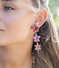 Deze oorbellen zijn net een mini-bloemenveld dat je gewoon aan je oren hangt. Drie bloemen in rood, paars en roze vormen samen een vrolijk rijtje dat meteen een glimlach oproept. Ze hebben dat speelse karakter waardoor je outfit meteen een stuk gezelliger voelt.