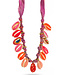 Zeg hallo tegen dé ketting van deze zomer. Deze kleurrijke, vrolijke en behoorlijk aanwezige schelpenketting is allesbehalve verlegen. Met haar mix van knalroze, oranje en peachy schelpen, stoffen koordjes en gouden details brult ze zachtjes: "Ik ben er!" – en eerlijk gezegd, daar zijn we dol op.
