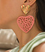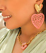 Daarbij hebben we ook nog die oorbellen… Wát een blikvangers. Goudkleurig bovenaan, en dan dat gigantische opengewerkte hart in een koraalroze tint. Ze wiebelen gezellig met je mee, en trekken gegarandeerd bekijks (en complimenten).