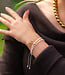 En dan heb je nog de armband met bedeltjes. Die maakt het net even interessanter. Met een klassiek slotje en een verlengketting kun je ‘m op maat dragen.