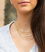 De meerdere fijne kettinkjes vallen mooi over elkaar heen en zorgen voor een zacht gelaagd effect. Geen gedoe met zelf combineren of knopen die in de war raken, gewoon één sluiting en je hebt meteen die volle, verzorgde look. Ideaal voor dagen waarop je haast hebt, maar er wel goed uit wilt zien.