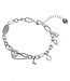 Een stoere schakelarmband maar dan met als extraatje de letters of tekst "love". Daarbij ook een hartjes bedel en een klein stukje extra ketting tussendoor.