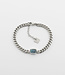 - De onderste armband heeft dikkere schakels en in het midden een natuursteen in Afrikaans Turkoois, dit is een groen/blauwe kleur met een klein beetje zwart. Het betreft een natuursteen en hierdoor is elke steen uniek. Een mooi statement piece en leuk te combineren met andere groen- en blauwtinten