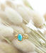 Soms kom je een ring tegen die zó zomers en vrolijk is, dat je ‘m gewoon meteen om je vinger wil schuiven. Deze goudkleurige beauty met een turquoise ovaal steen is precies zo’n sieraad. De kleur van de steen doet denken aan een tropische zee, waar je het liefst direct in zou willen duiken. De gouden band, met speelse details en subtiel fonkelende accenten, maakt het geheel helemaal af.